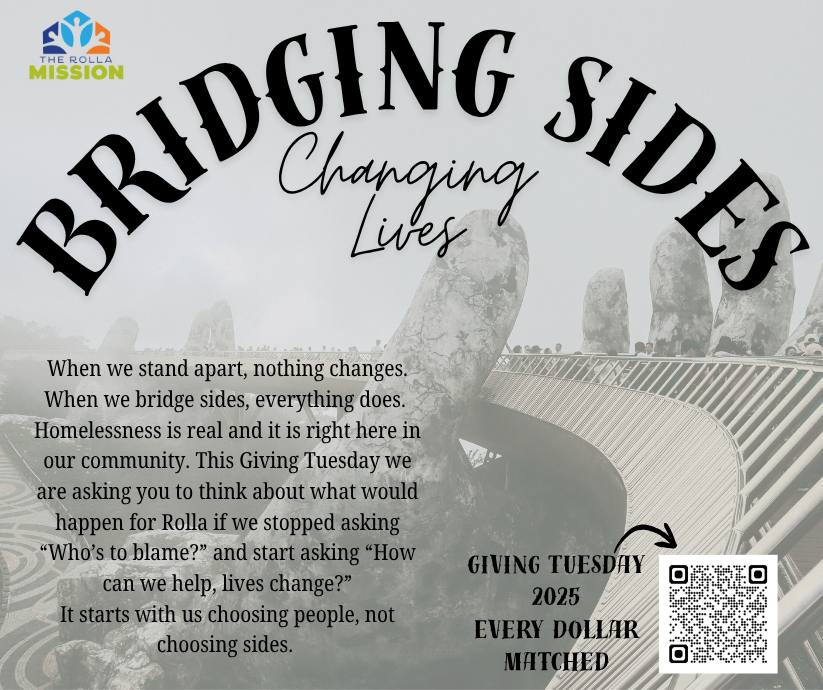 Serve Phelps County's homeless at The Rolla Mission. Volunteers keep our facility running, supporting staff, enhancing services, and changing lives.